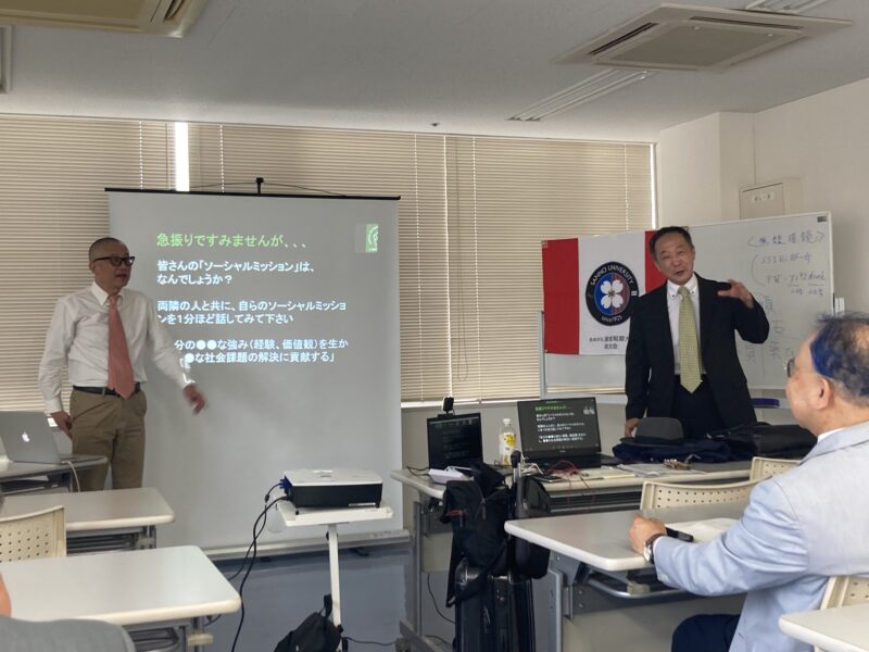 講演会では、ベーグル専門店“ BAGEL&BAGEL” の創業者で現在、社会起業大学の学長であられる林浩喜先生の「我が起業人生について」というお話しをお聴きすることが出来ました。ご自身のエキサイティングな体験を楽しく織り交ぜつつソーシャルミッションという重要なマインドを教えて頂きました。